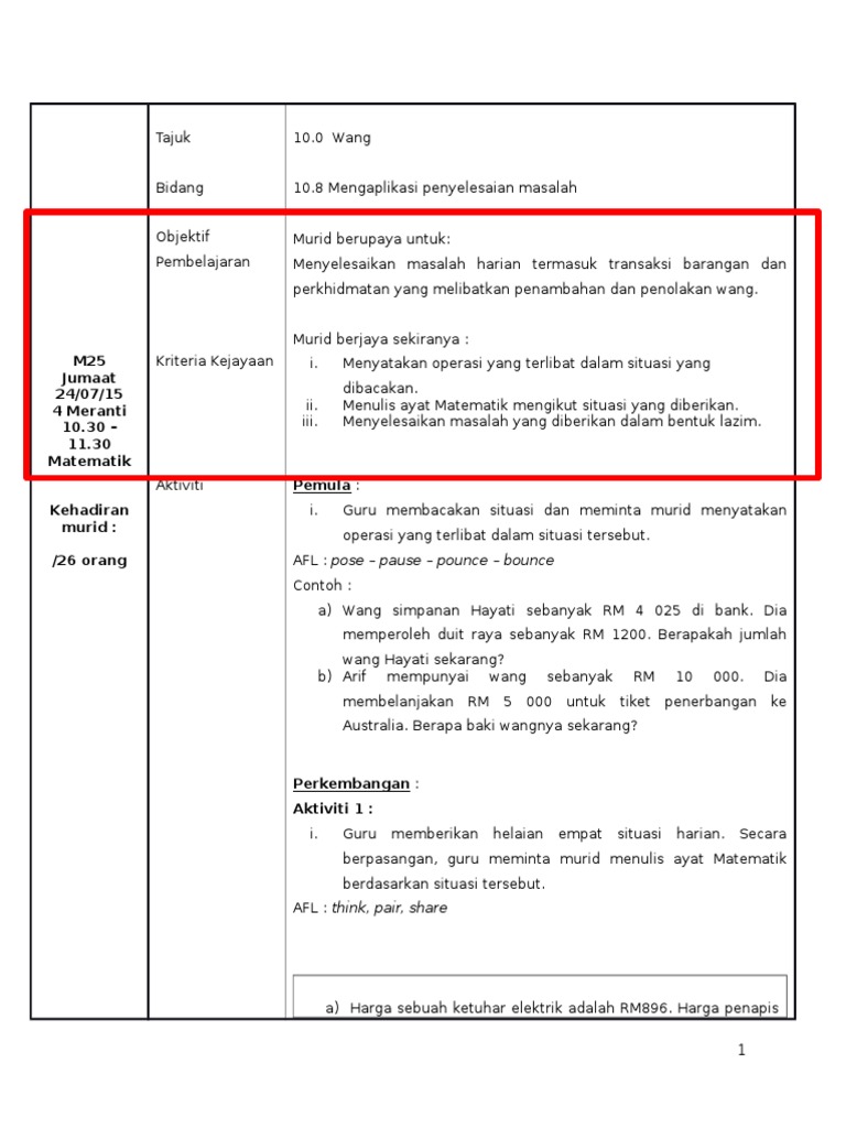 Penulisan Objektif Dan Kriteria Kejayaan Dalam Rph Ts25 Otosection